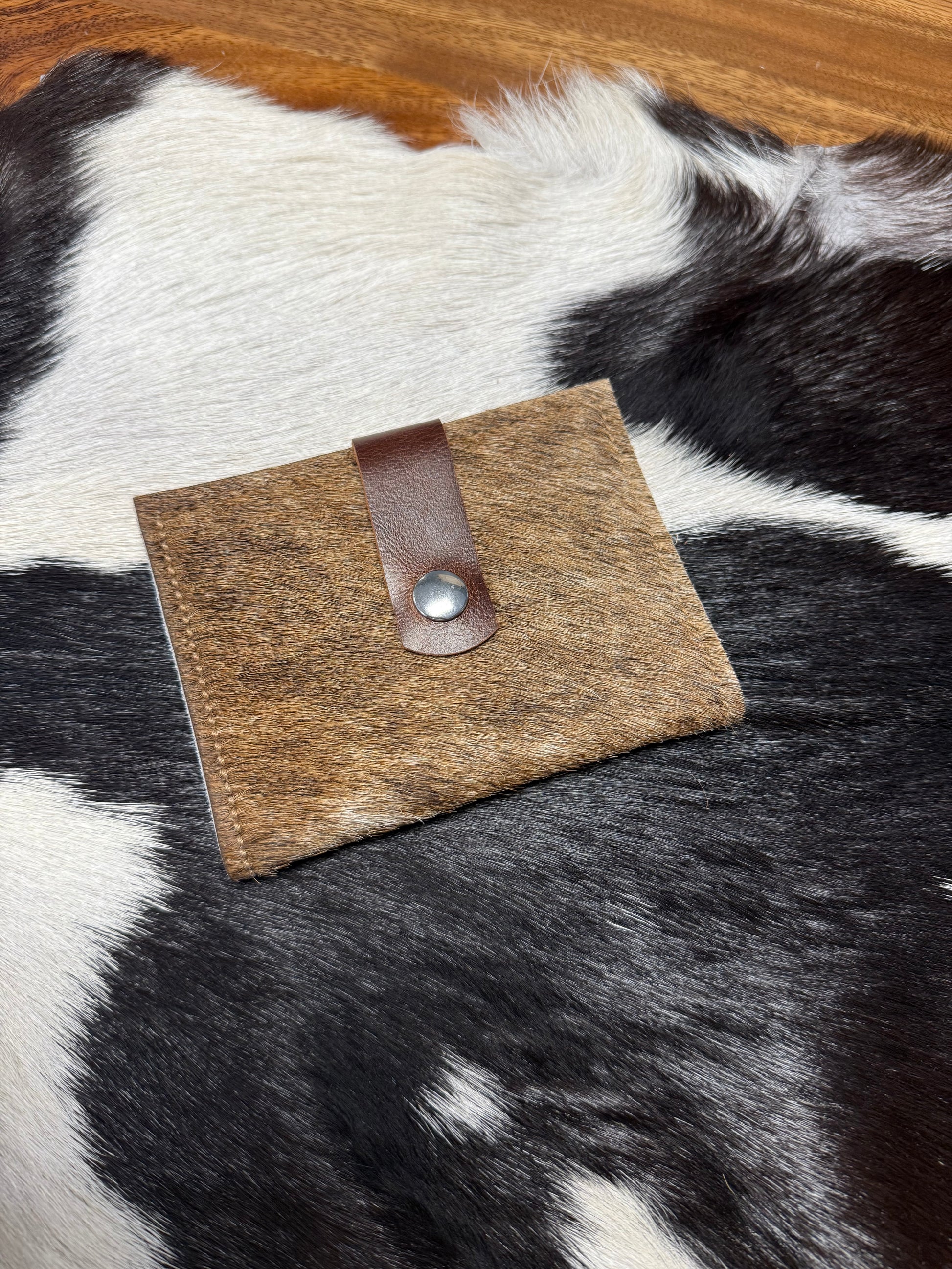 Snap closure, 4 card slots(cards can be stacked), 2 big pockets for extra cards, money, or receipts.